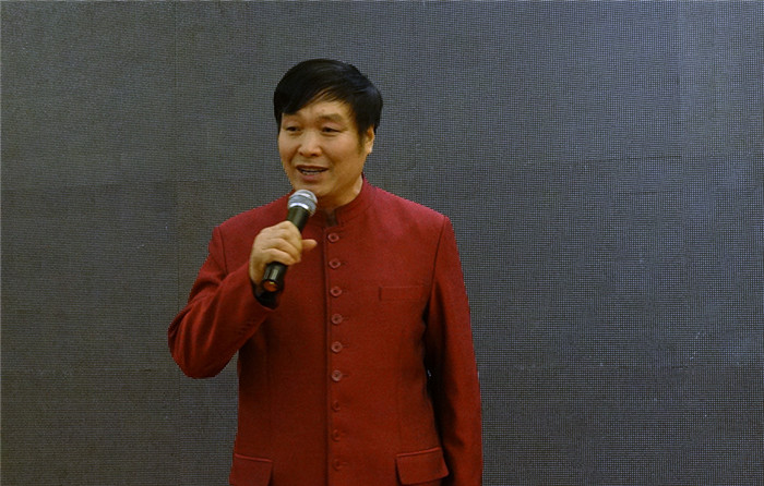 天津國商人集團(tuán)黨支部書記、董事長林谷春、總經(jīng)理趙清立與水之聲藝術(shù)團(tuán)合影
