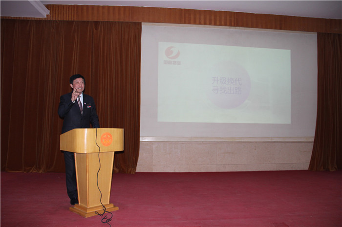 林谷春董事長做“升級換代,尋找出路”的培訓講話