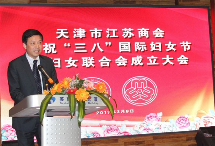 天津市江蘇商會會長林谷春先生參加天津市江蘇商會婦女聯合會成立大會發表講話并合影留念