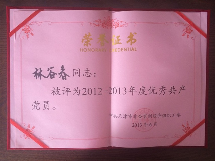 黨支部書記林谷春榮獲“天津市優秀共產黨員”稱號